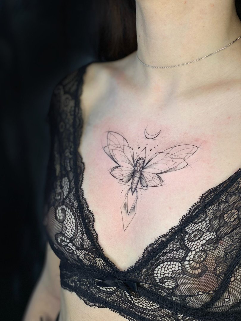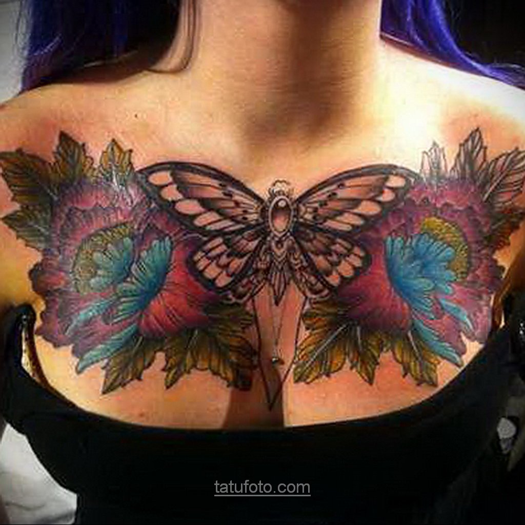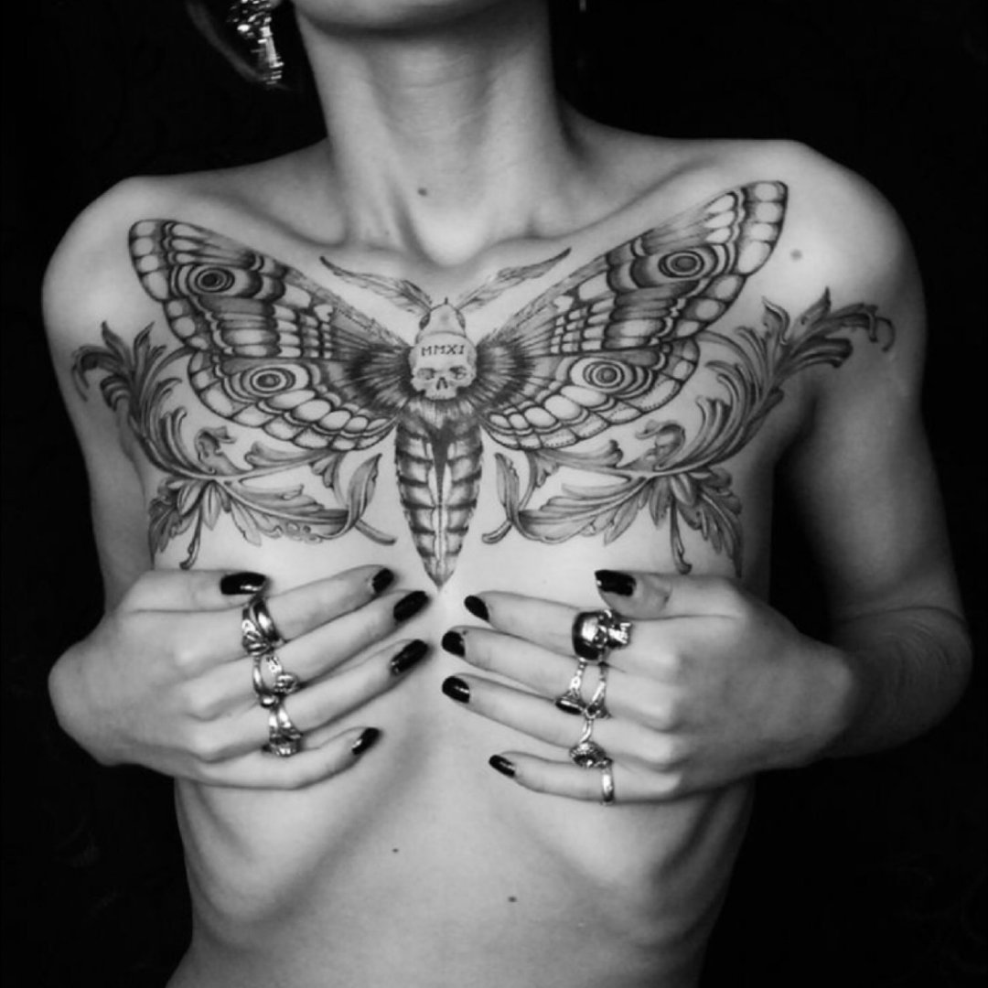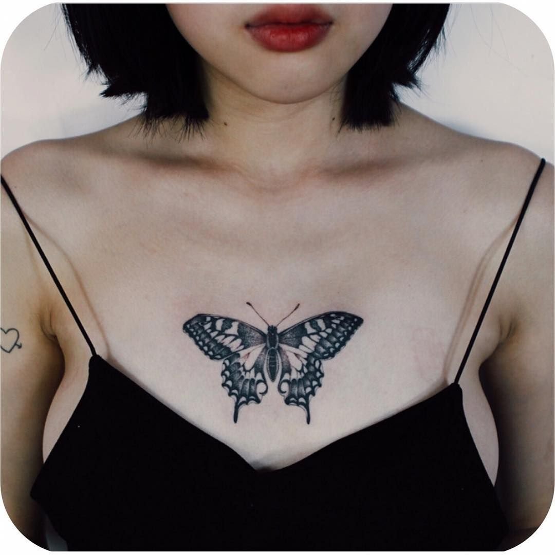 Фото: Тату бабочка на груди