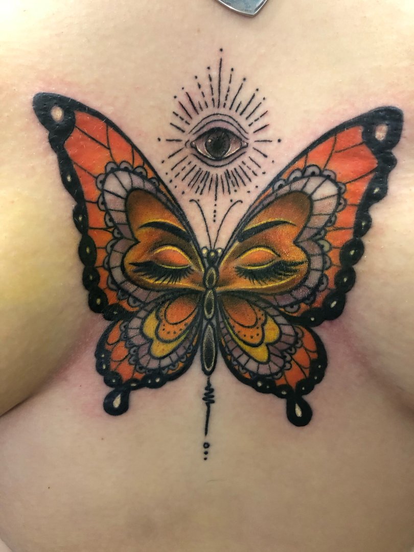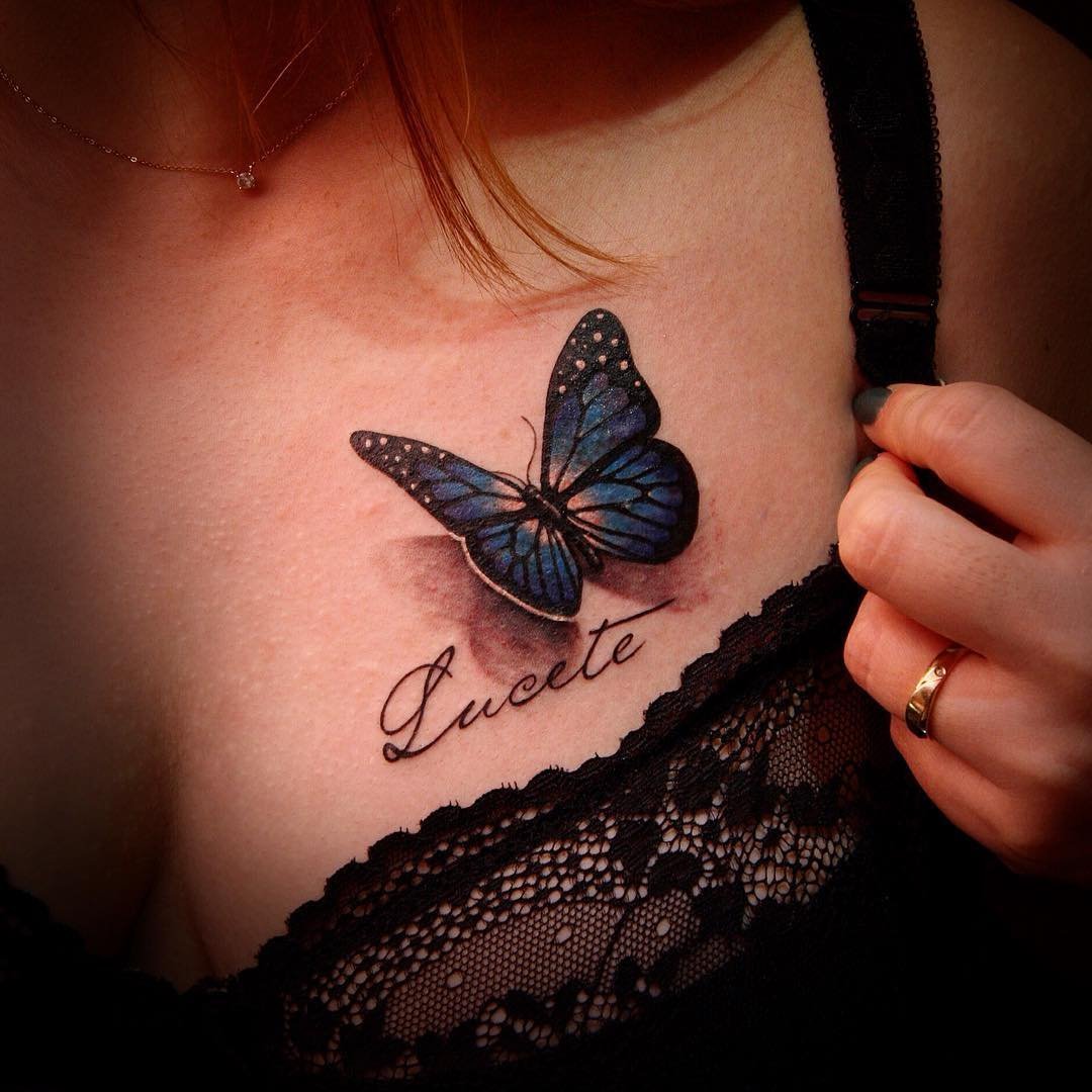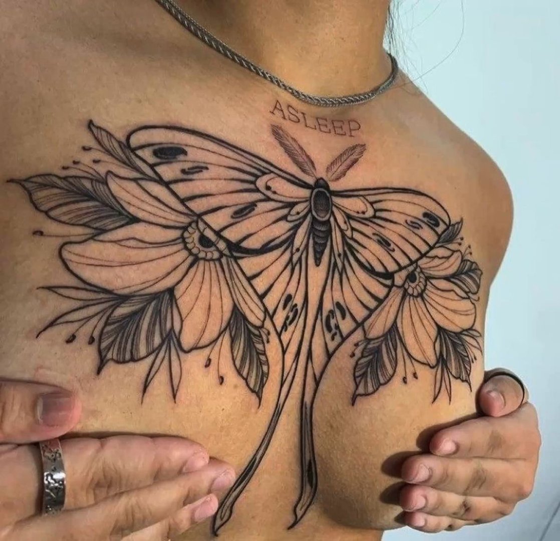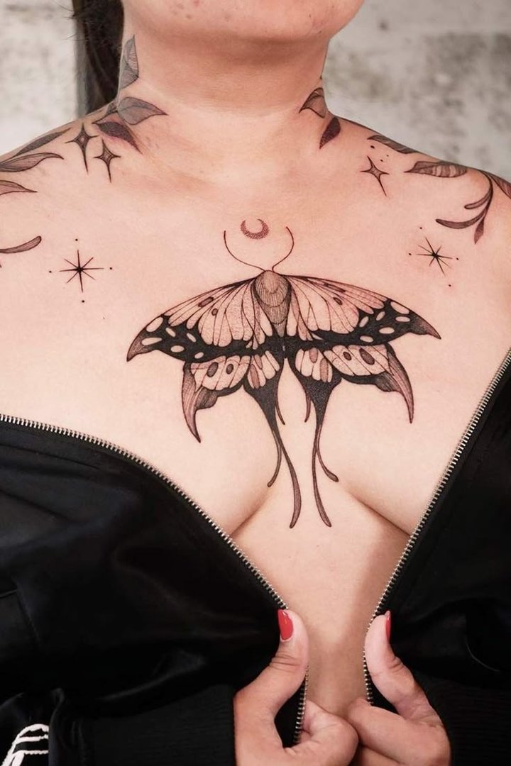 Фото: Тату бабочка на груди
