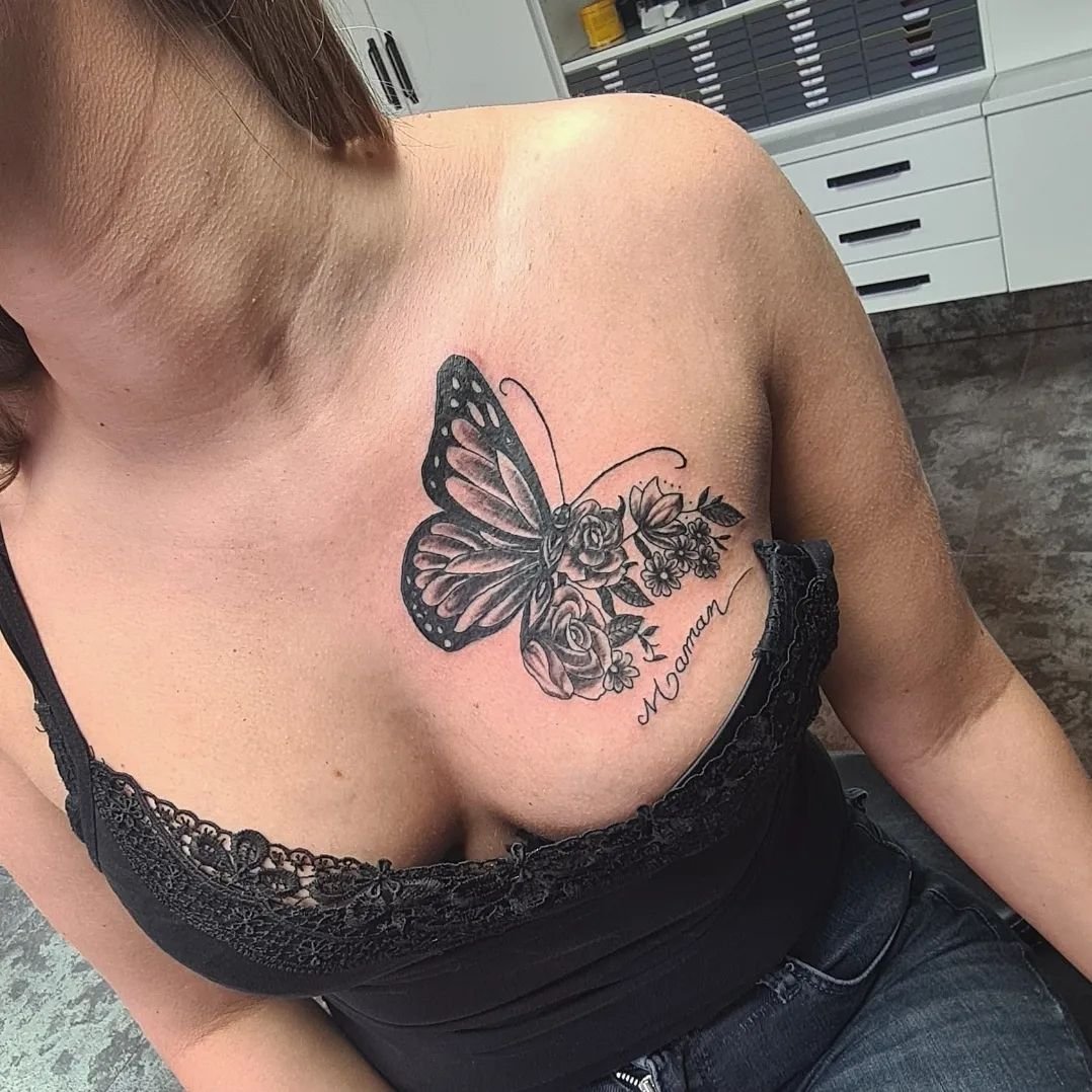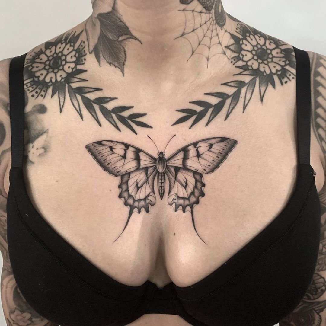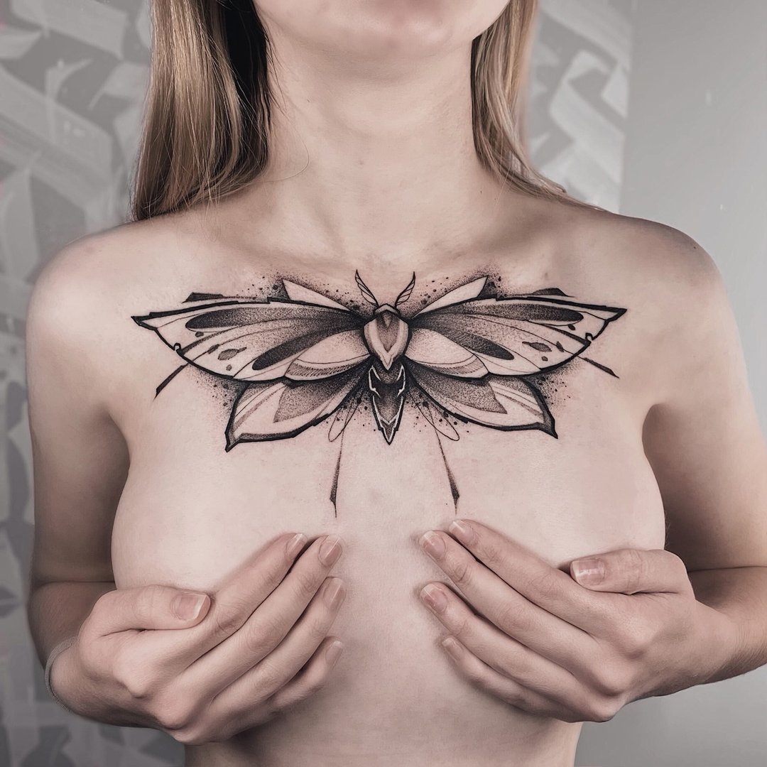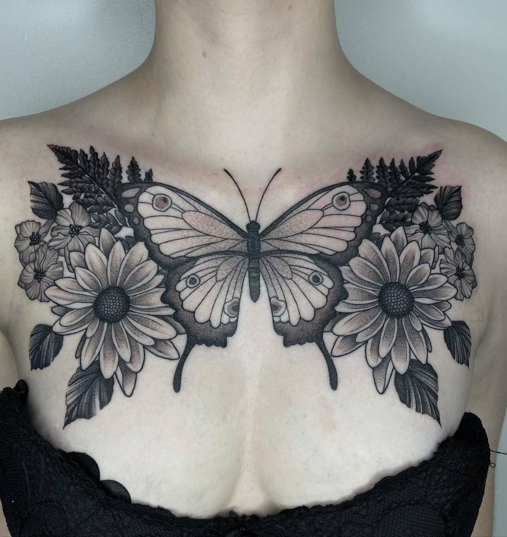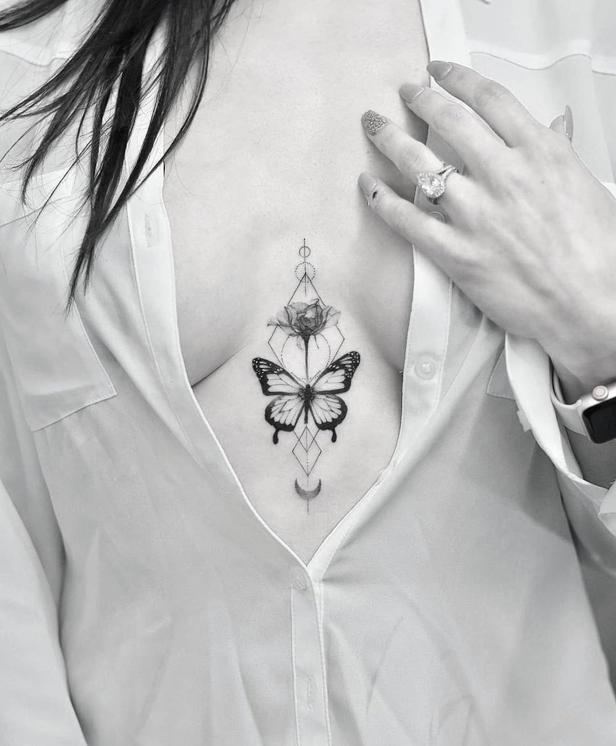 Тату бабочка на груди