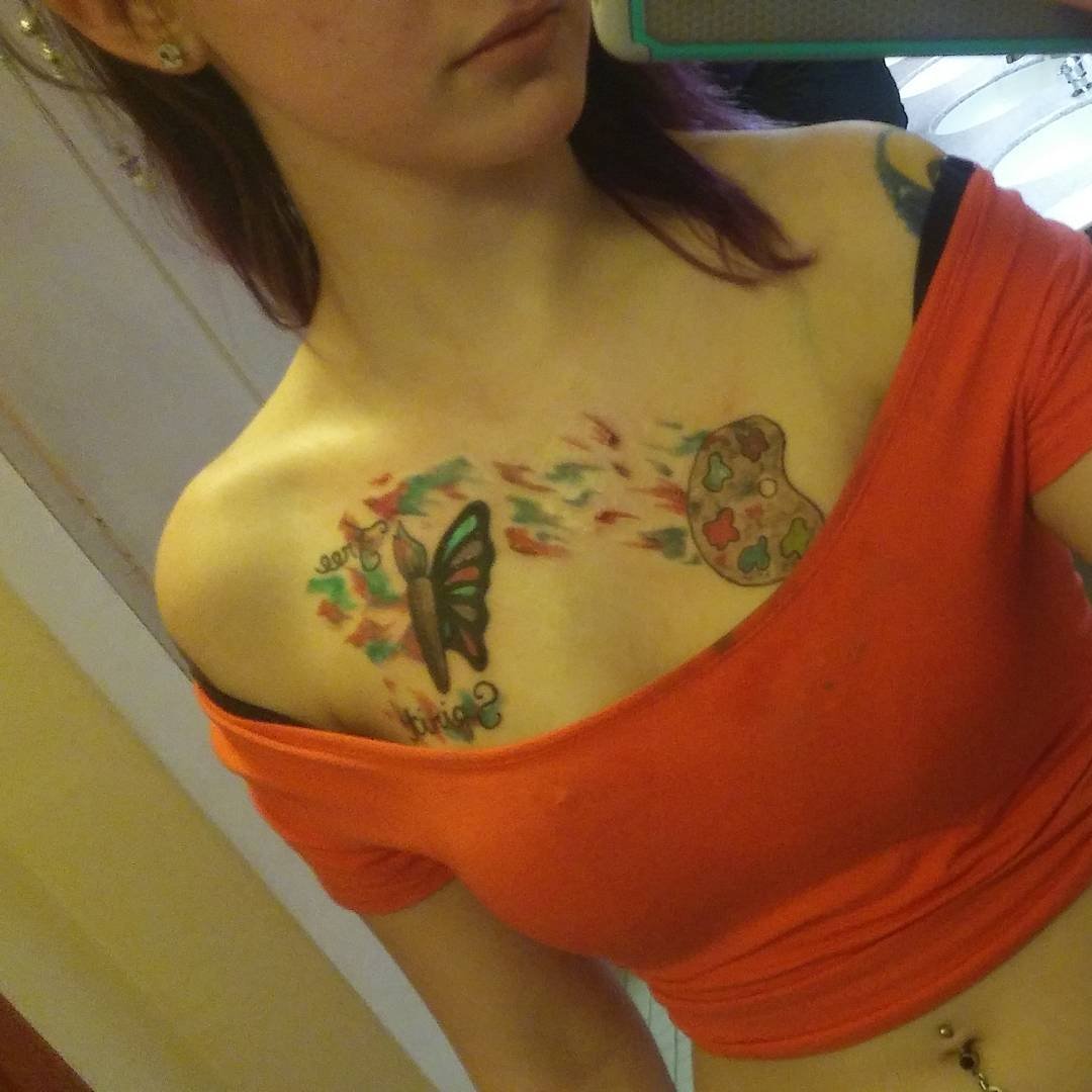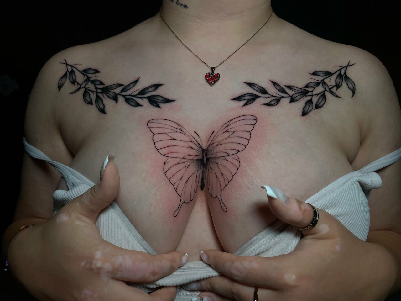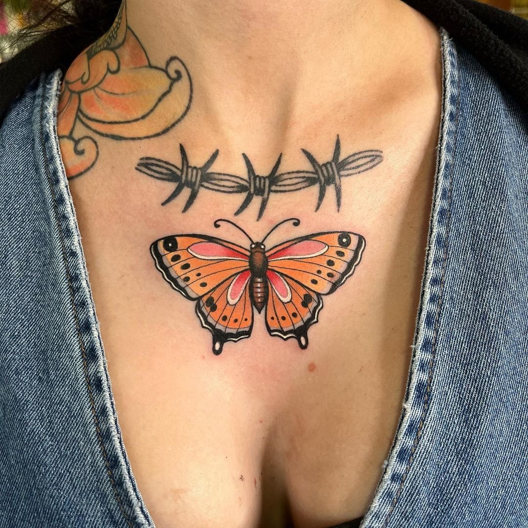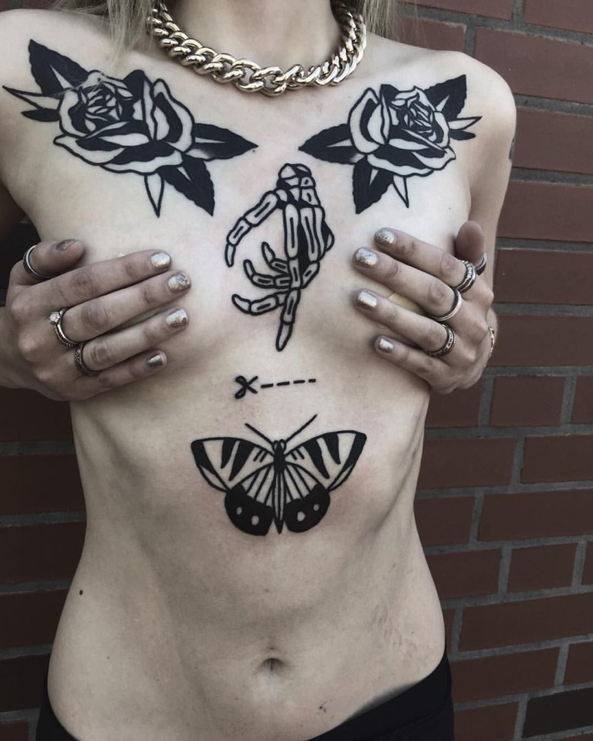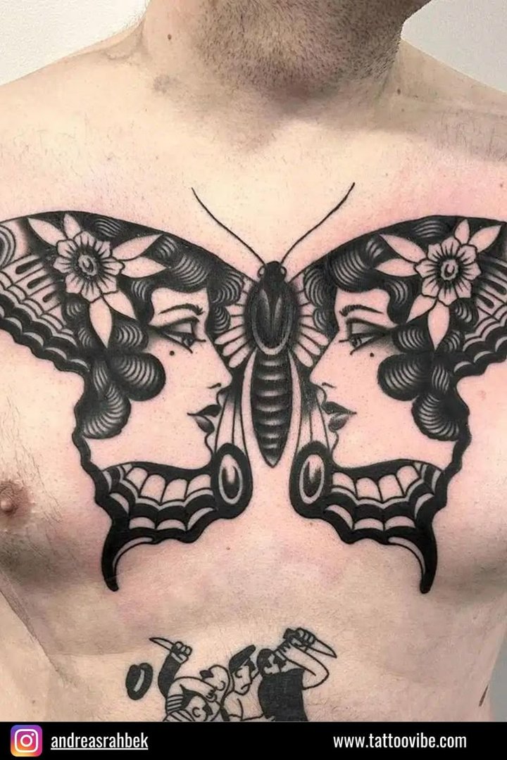 Тату бабочка на груди