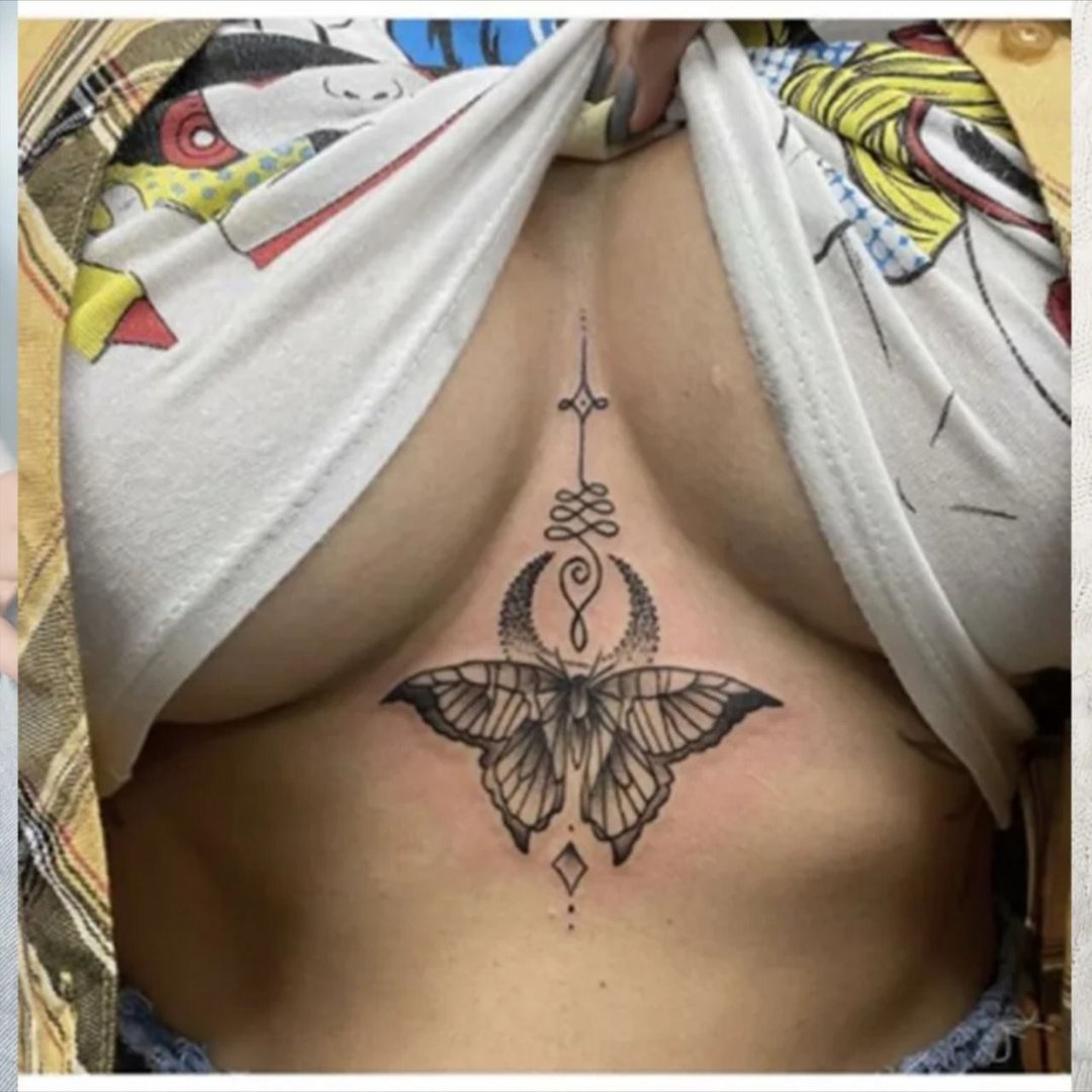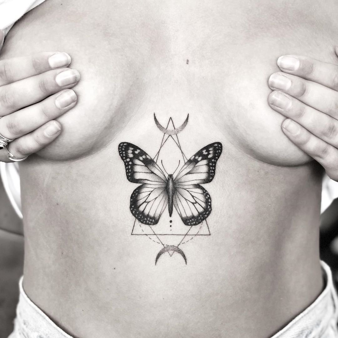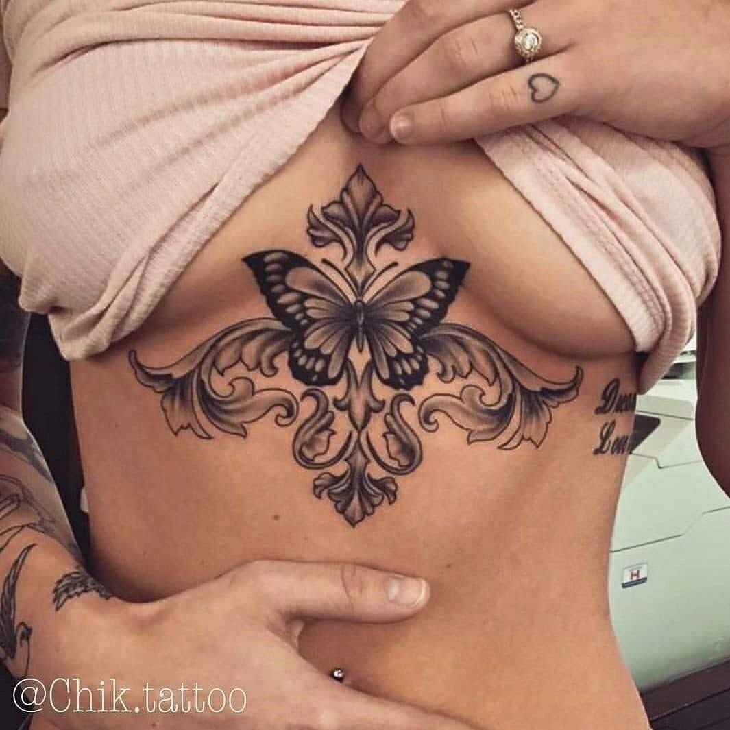 Фото: Тату бабочки под грудью