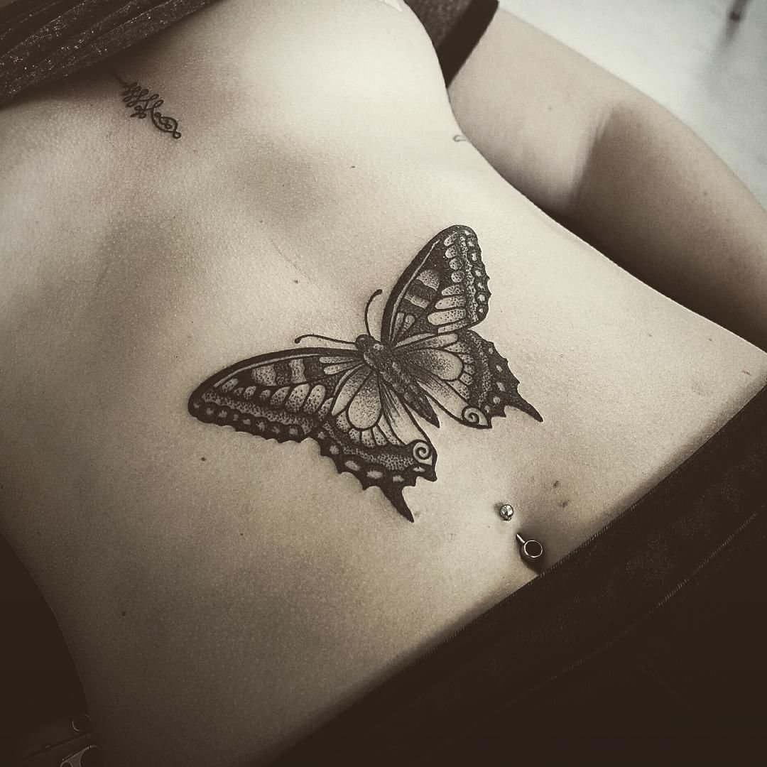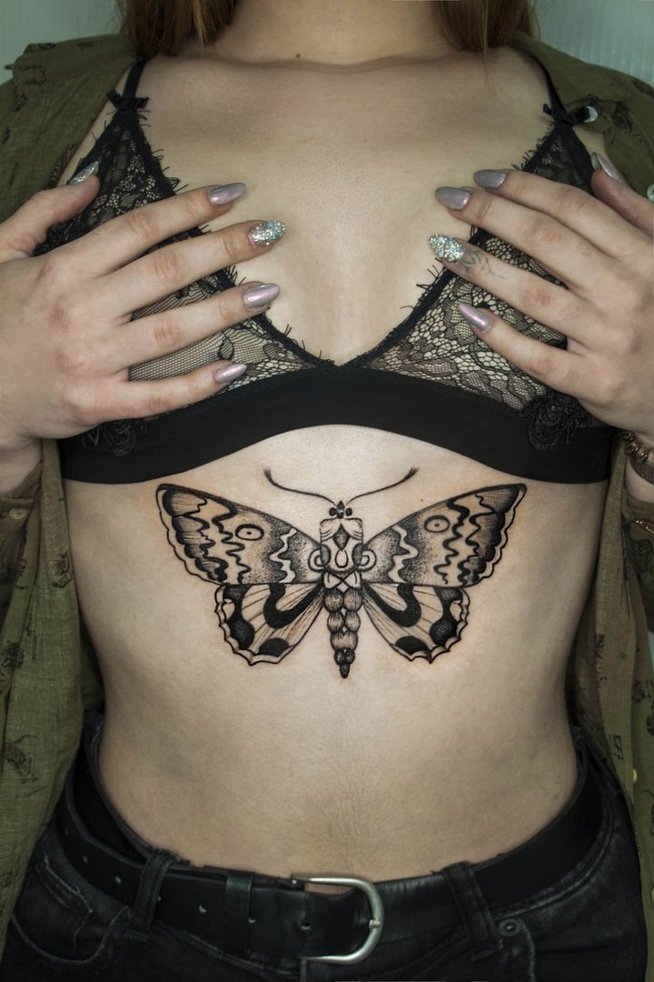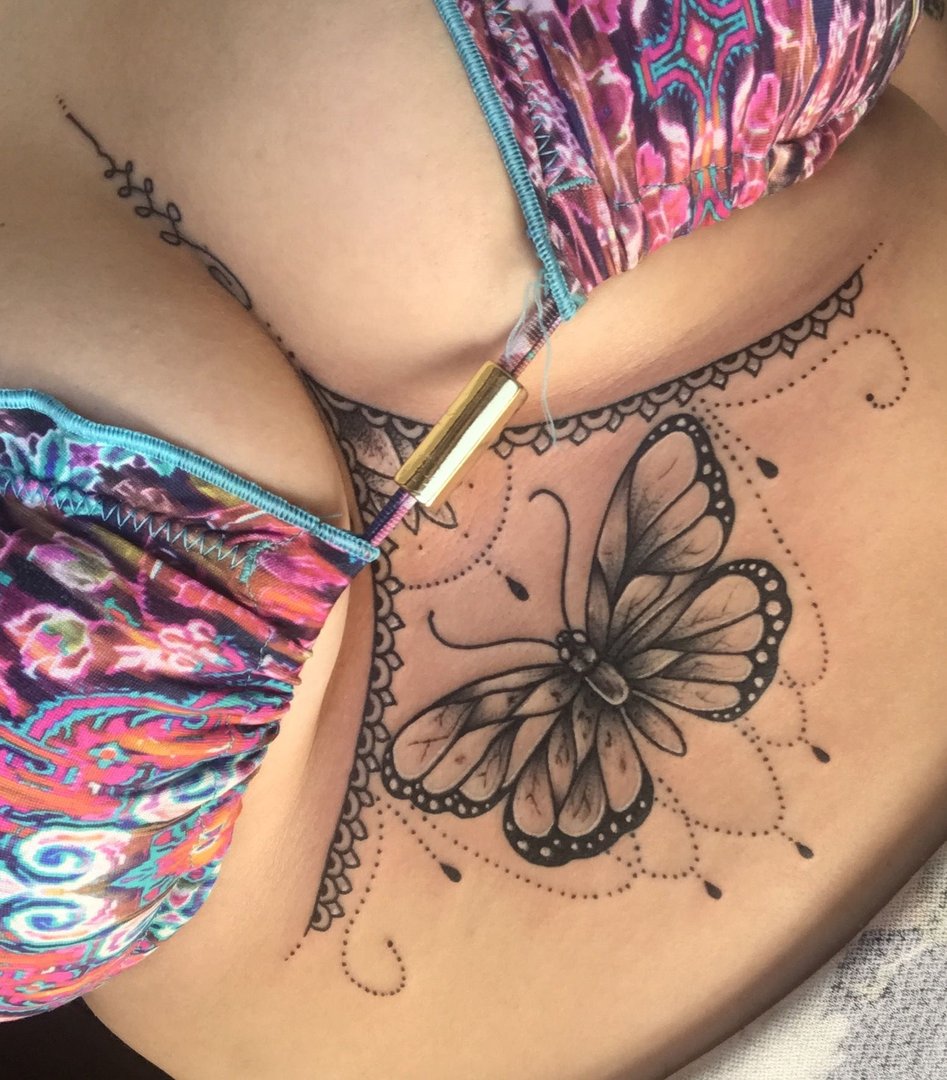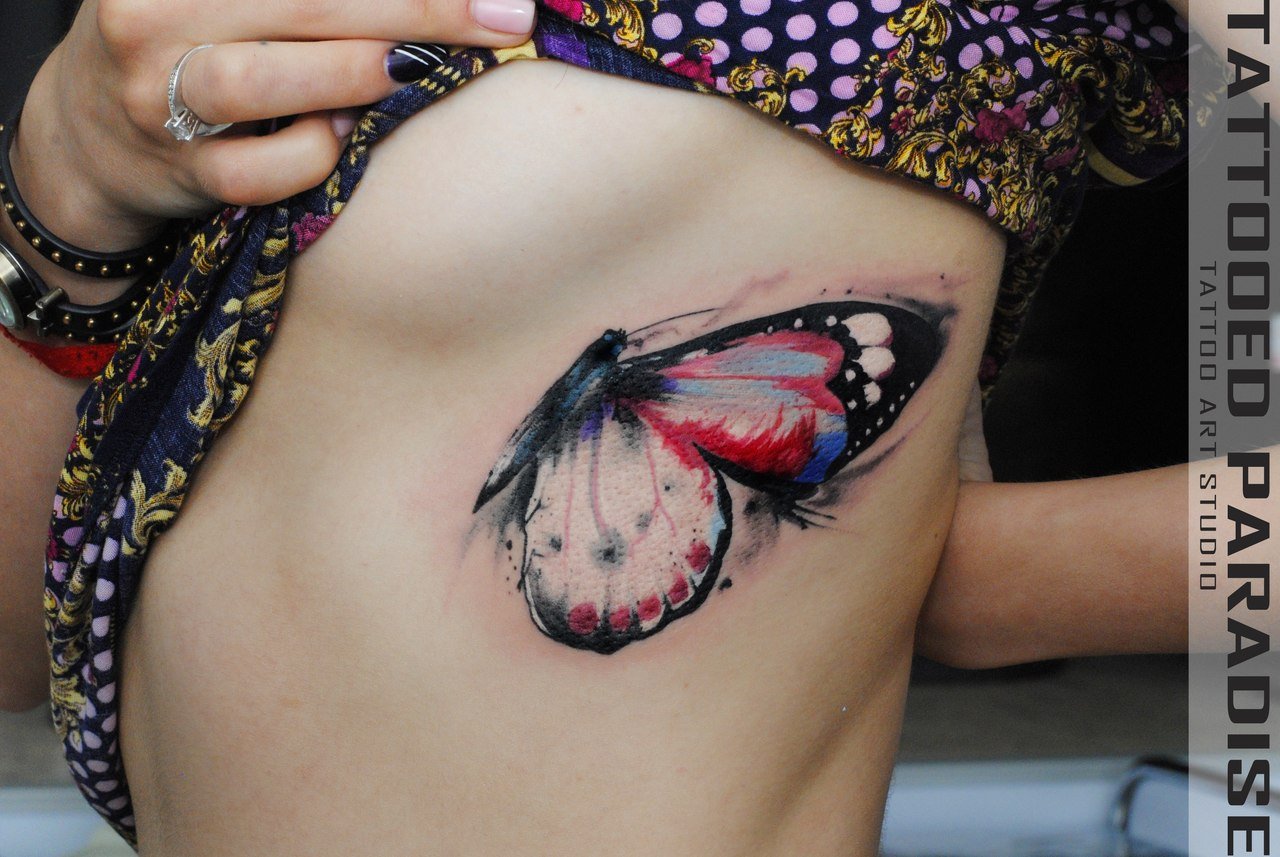 Фото: Тату бабочки под грудью