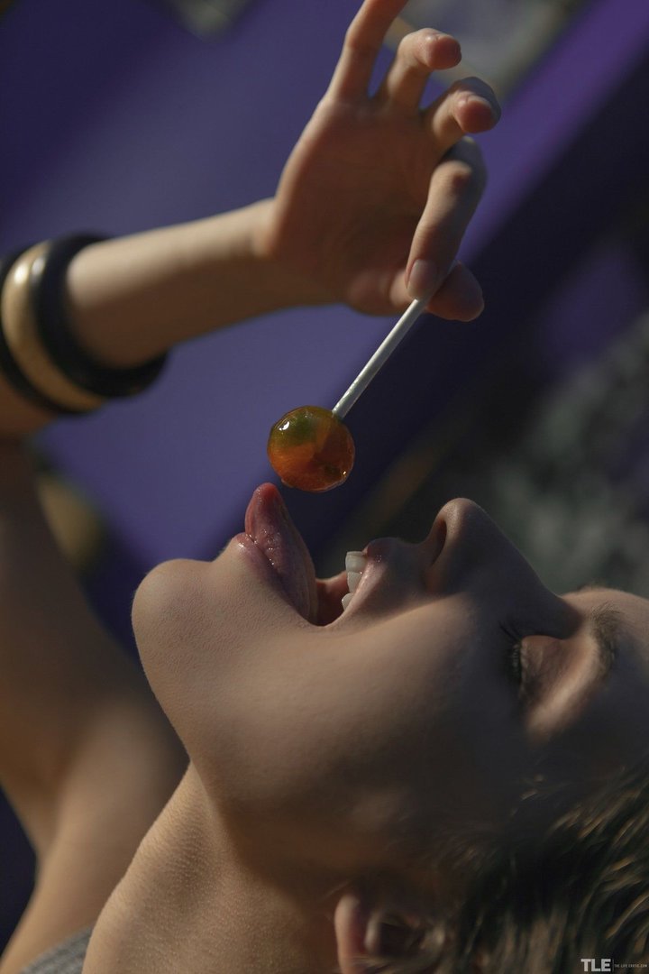 Фото: Девушка сосет леденец