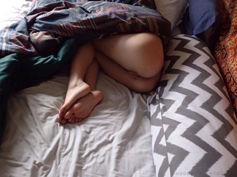 Фото: Женская киска под одеялом