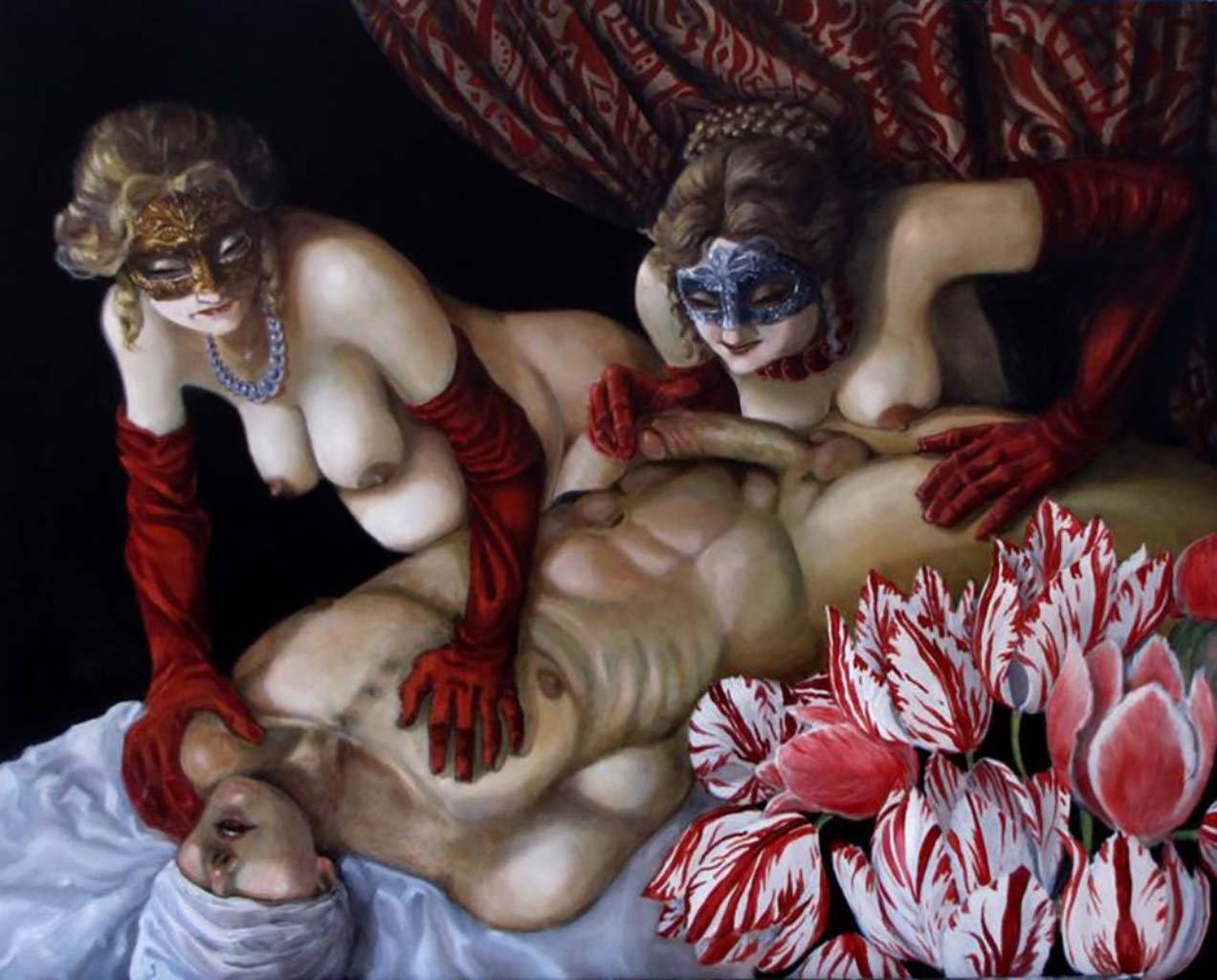 Фото: Голые женщины в маскарадных масках