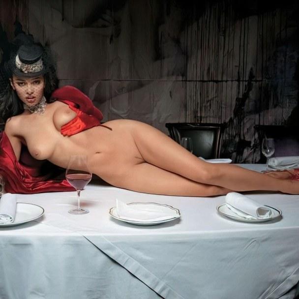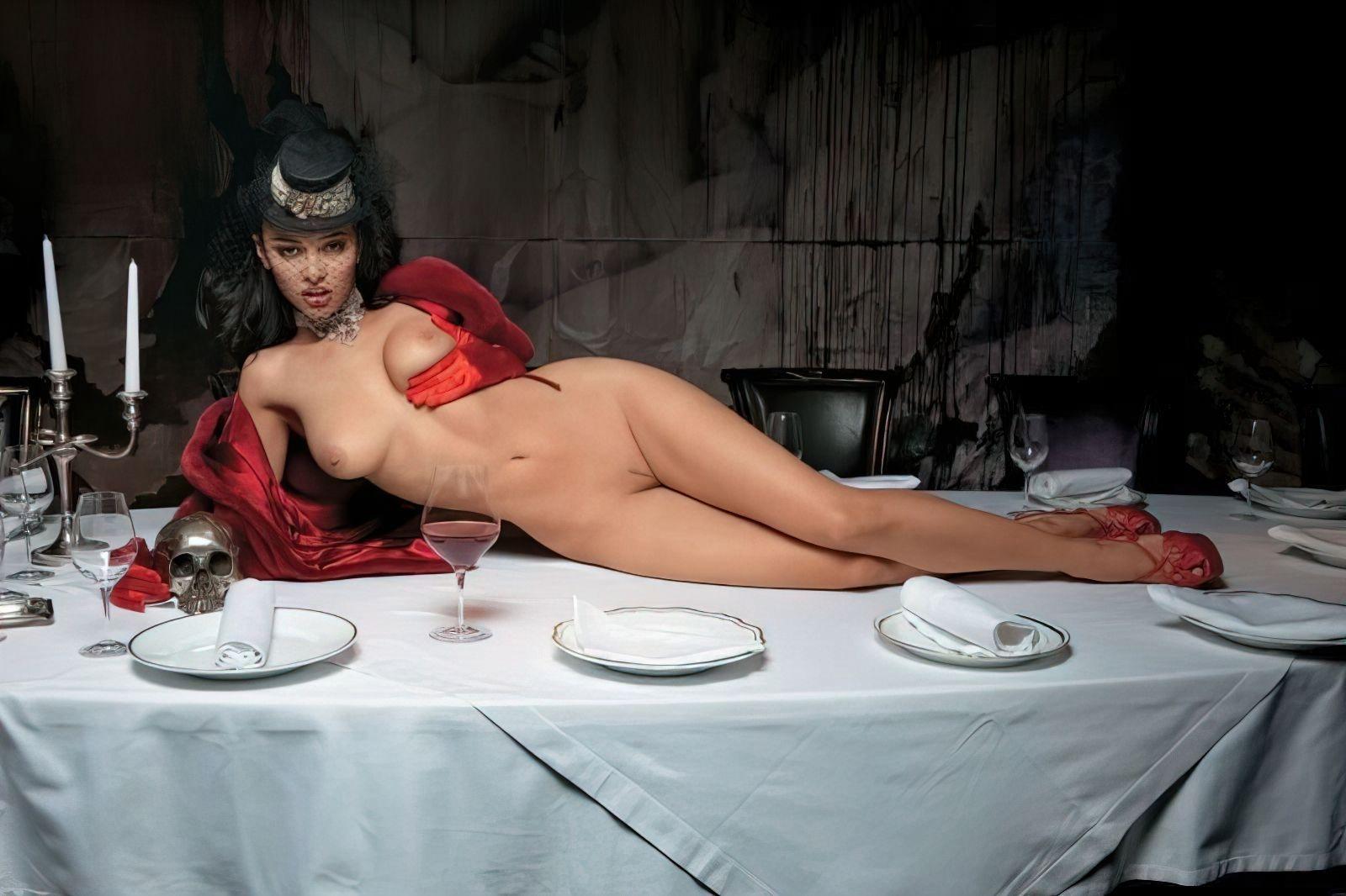 Голая в ресторане