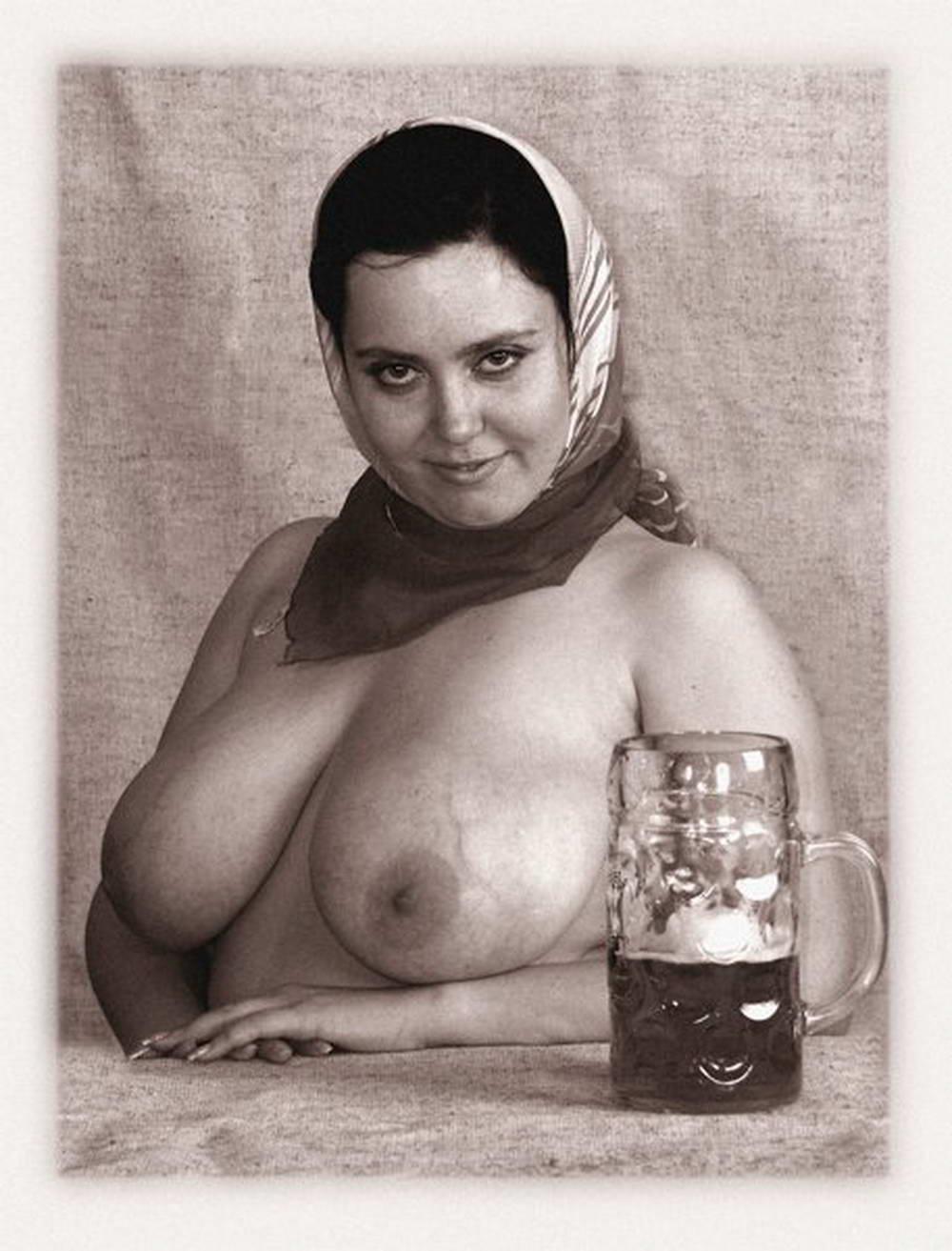 Голая с пивом