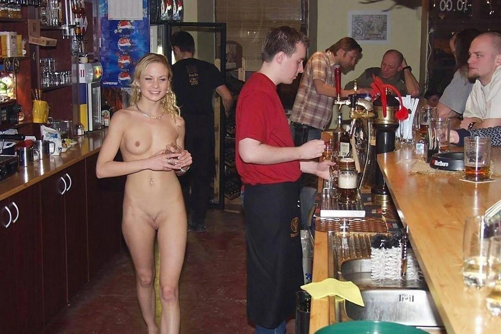 Голая в баре