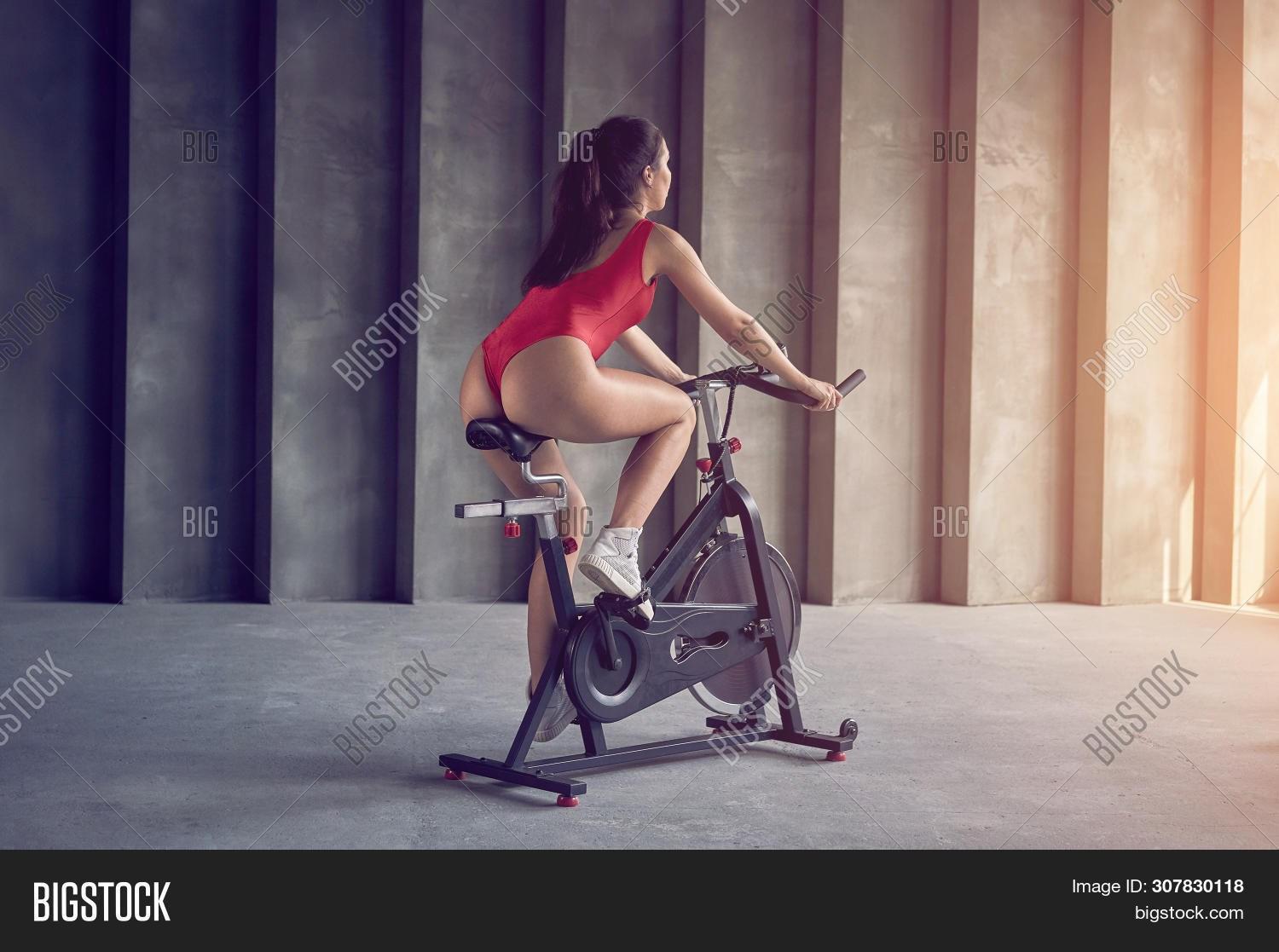 Голая на велотренажере